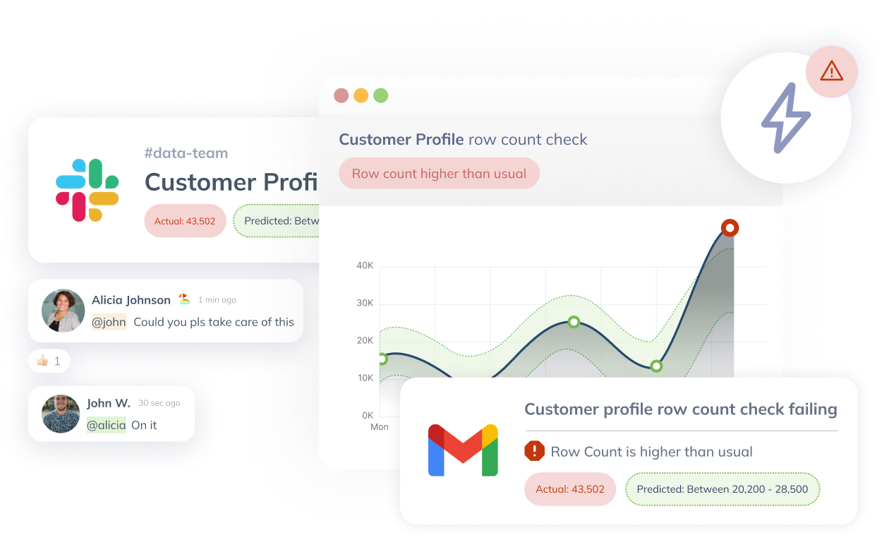 Effortlessly detect data quality issues with automated checks and AI-driven anomaly detection. Notify your team where they work when issues arise and keep stakeholders in the loop with centralized incident tracking. Spend minutes, not days, resolving issues with detailed lineage, documentation, and ownership information all in one place.